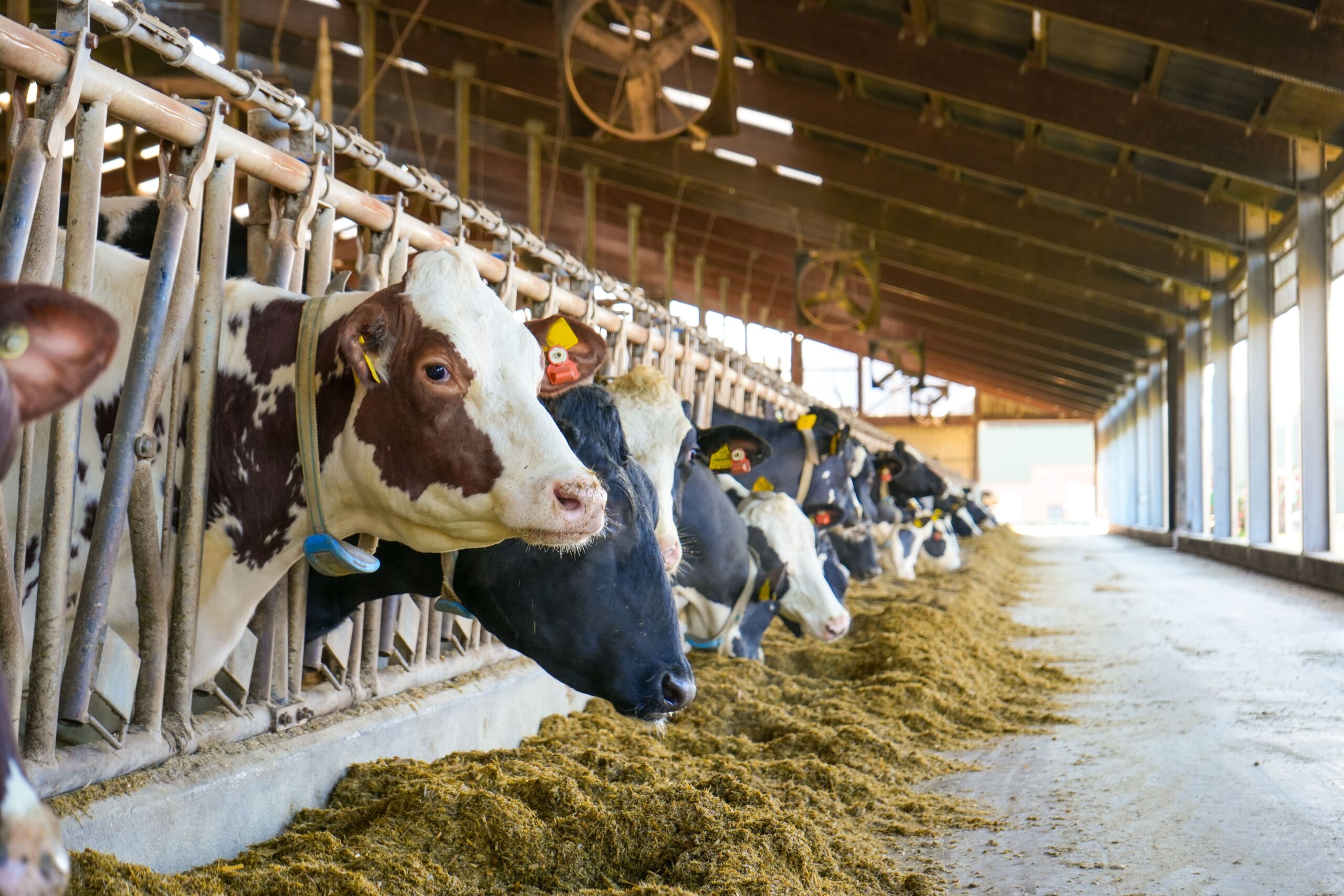 Moderne Tierställe in der Landwirtschaft sind offen, lichtdurchflutet und gut belüftet, mit automatisierter Fütterung, großzügigem Platzangebot und Auslaufmöglichkeiten, um den Tieren artgerechte und stressfreie Lebensbedingungen zu bieten